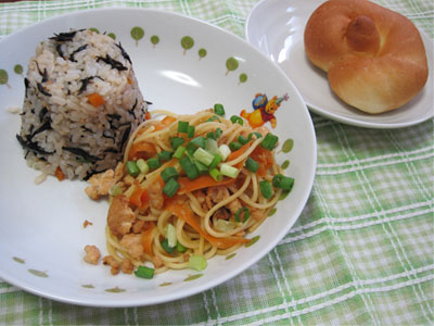 ひじきご飯と、ネギそぼろパスタでござります(*´∇`)